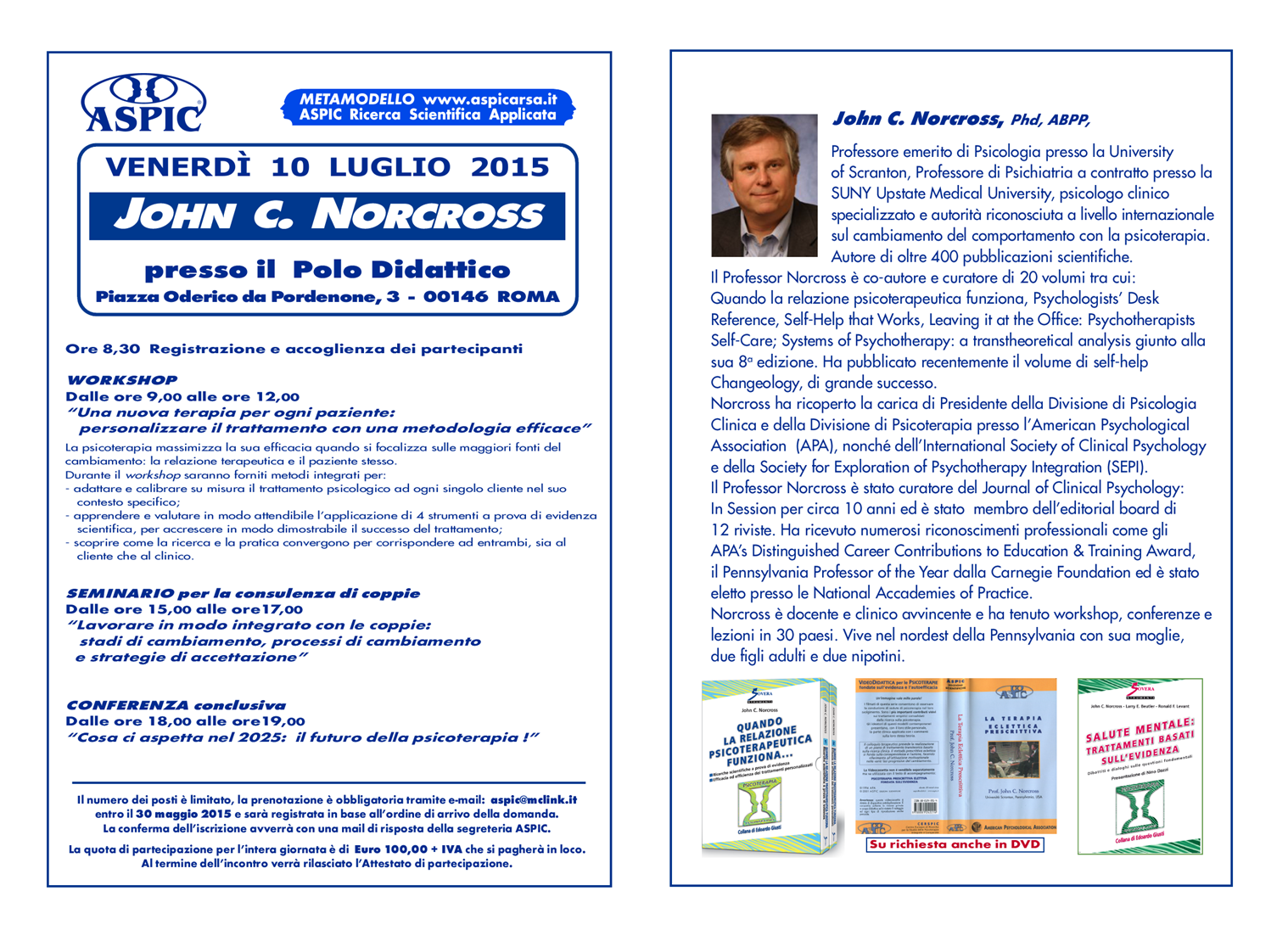 Registrazione obbligatoria: www.aspicpuglia.it